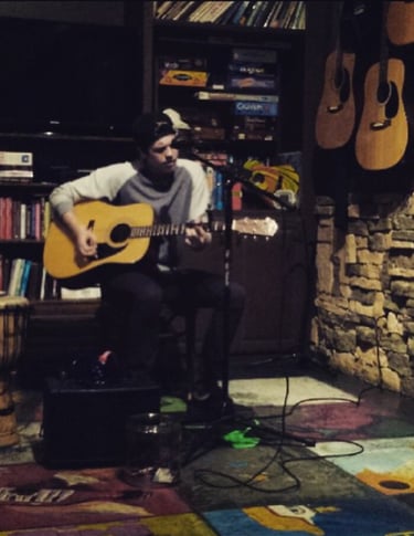 I got my first guitar when I was 13 years old. I was having an open heart surgery and would have to miss a bunch of school, so my mom got it for me as something I could learn in my downtime - and I never put it down. My uncle taught me my first chords. He was living with us at the time and we'd stay up until 4am sometimes playing. When I was 17, he brought me to a guitar circle at a place called Cafe Bohemia in Plano, TX. I was the youngest there by far and I didn't think they liked the songs I played... but on the way out, the owner gave me her card and invited me to play there. It was an hour and half from home and it didn't pay, but it was an opportunity to spread my wings - I had some absolutely brutal sets in that cafe, but it gave me a safe place to fail 'till I learned to fly a little.