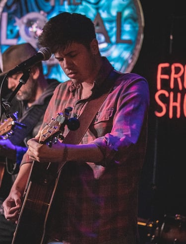 I got my first guitar when I was 13 years old. I was having an open heart surgery and would have to miss a bunch of school, so my mom got it for me as something I could learn in my downtime - and I never put it down. My uncle taught me my first chords. He was living with us at the time and we'd stay up until 4am sometimes playing. When I was 17, he brought me to a guitar circle at a place called Cafe Bohemia in Plano, TX. I was the youngest there by far and I didn't think they liked the songs I played... but on the way out, the owner gave me her card and invited me to play there. It was an hour and half from home and it didn't pay, but it was an opportunity to spread my wings - I had some absolutely brutal sets in that cafe, but it gave me a safe place to fail 'till I learned to fly a little.